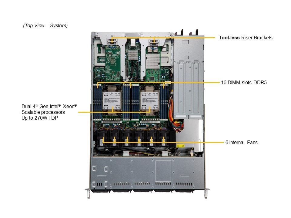 - Dual sockets E (LGA-4677) 4th Gen Intel Xeon Scalable processors