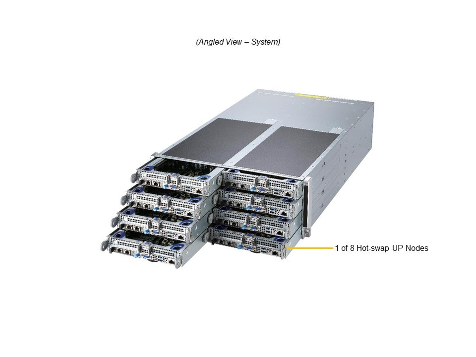 Eight hot-pluggable systems (nodes) in a 4U form factor. Each node supports the following: