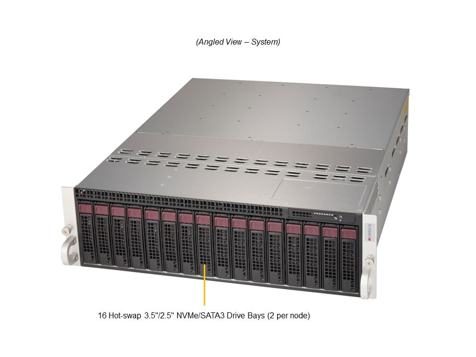 - 12 set of 2x internal 3.5" SATA3 (6Gbps) (or) 4x 2.5" SATA3 drives with 2x Hybrid NVMe U.2; Intel RSTe RAID