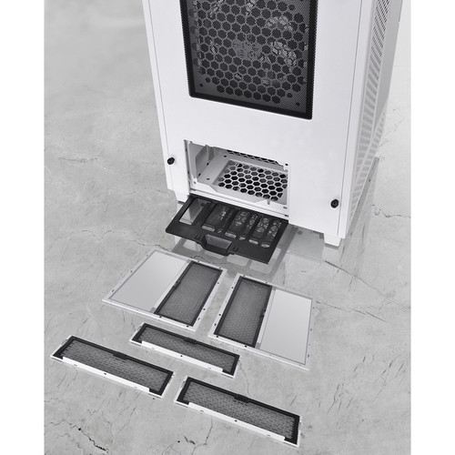 The Tower 100 Snow has well-designed removal magnetic fan filters on the back, on inner two sides, and at the inner bottom layer. At the base, the removable filters provide excellent dust protection and dirt reduction, ensuring a dust-free environment.