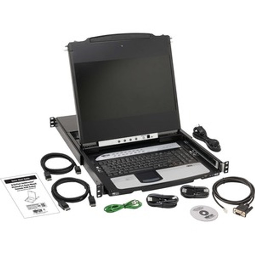 - Dual-rail design allows LCD to stay open while keyboard/touchpad slides into the rack