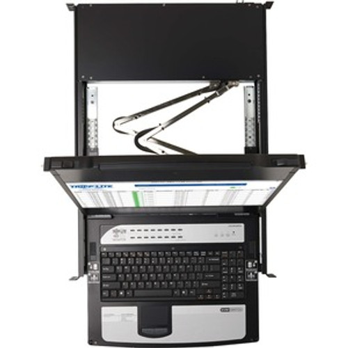 - Dual-rail design allows LCD to stay open while keyboard/touchpad slides into the rack