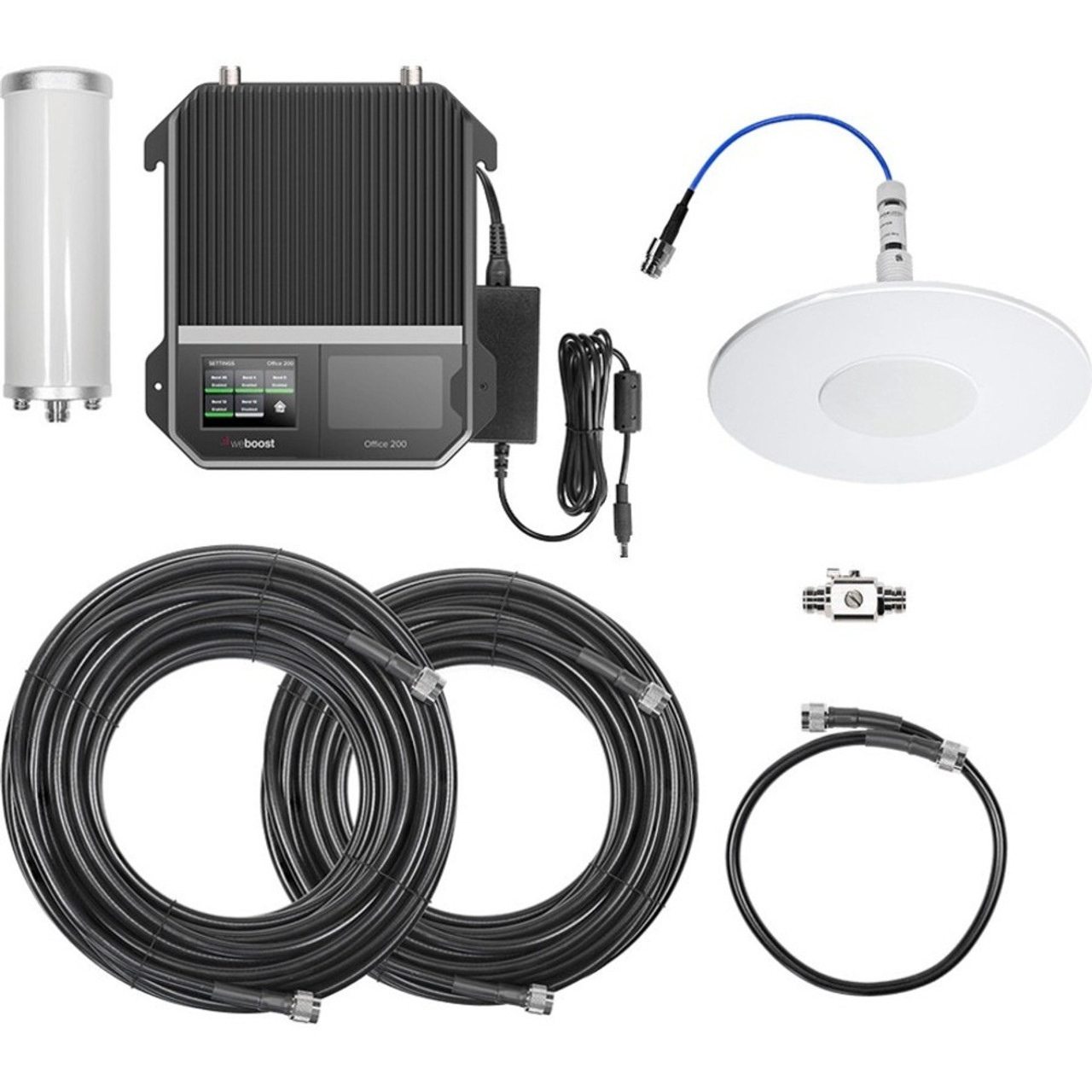 Resolve cell signal issues with a quick, turnkey solution that includes complete, professional installation. Office 300 Installed is our best-in-class solution, designed for smallto-medium businesses and warehouses. It comes with two low-profile antennas for optimal cell signal coverage throughout a commercial space. Also included, is a new outside omni directional antenna that has higher gain and better range which will efficiently receive the best possible signal. Office 300 Installed is 5G compatible and improves cell signal on all U.S. carrier networks, including Verizon, AT&T, T-Mobile, UScellular and others. Office 300 Installed also comes with an industry-leading 3-year manufacturer's warranty and a 30-day money-back guarantee.